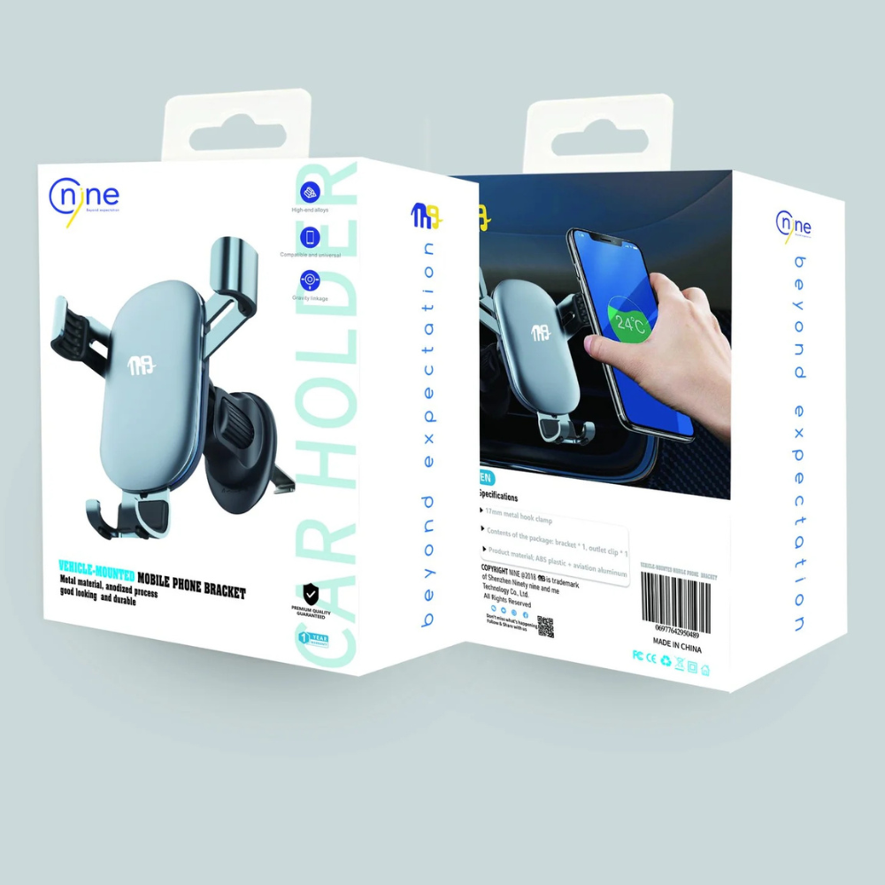 حامل موبايل للسيارة من NINE بتصميم ذكي يعمل بنظام الجاذبية لتثبيت الهاتف تلقائيًا، مصنوع من خامات عالية الجودة لضمان الثبات والأمان أثناء القيادة، مع تصميم أنيق وعصري يناسب جميع السيارات.