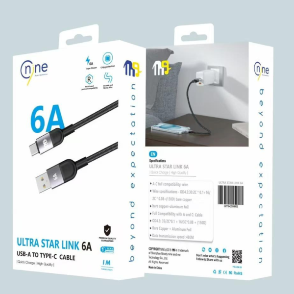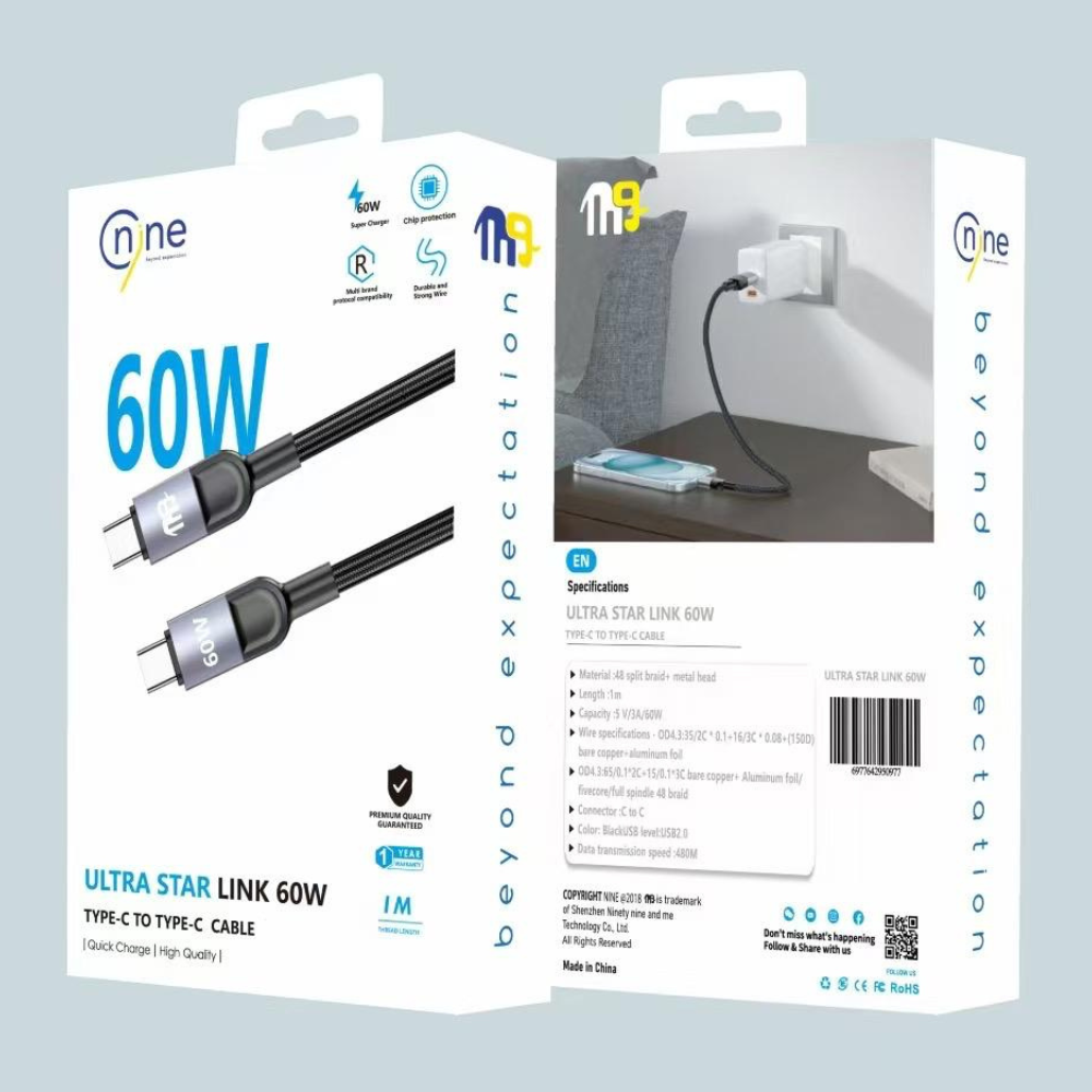 The Nine Ultra Star Link 60W cable delivers powerful and fast charging with support for modern charging technologies, ensuring optimal performance for various devices.